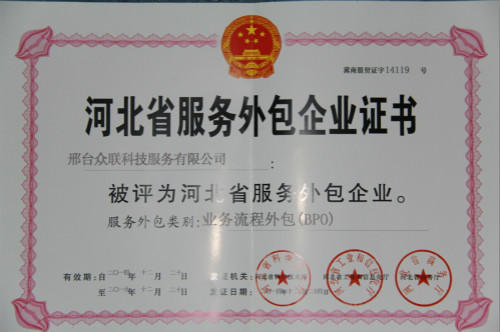 河北省服務(wù)外包企業(yè)證書